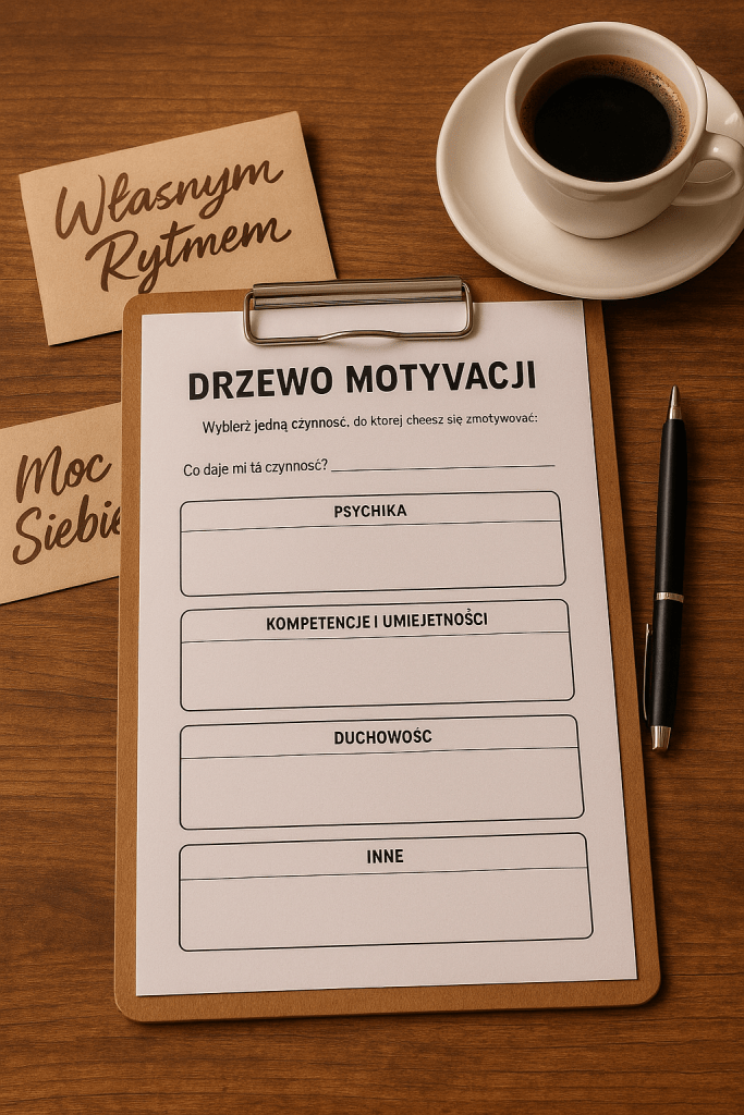 - Wybierz 1–2 najważniejsze motywatory z drzewa motywacji.